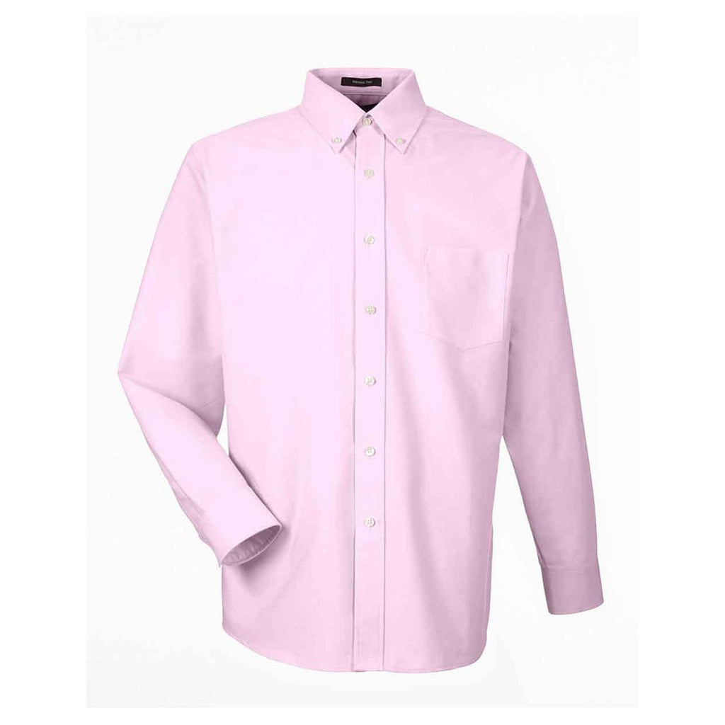 UltraClub Men's Pink Classic Wrinkle-Resistant Long-Sleeve Oxford