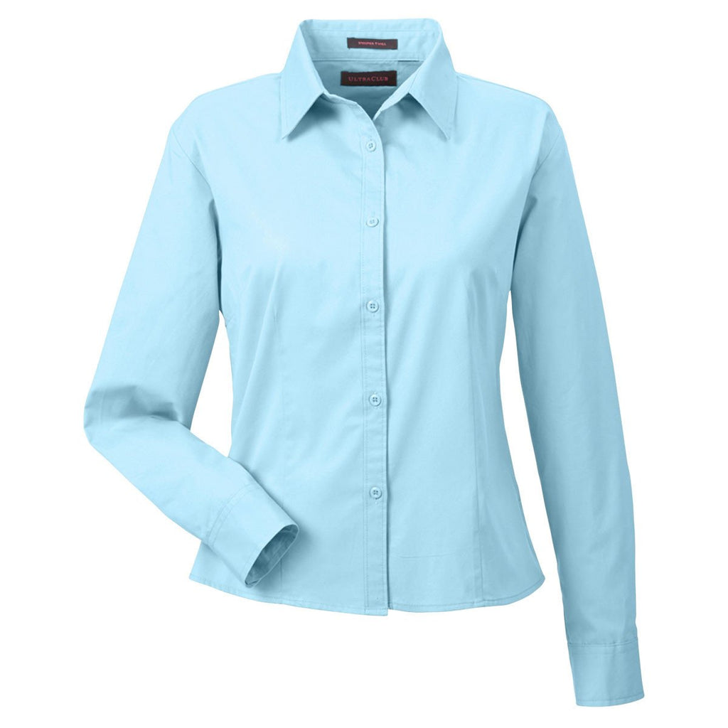 You do not have to whisper to keep the high-end fashion features quiet about the UltraClub Women's Sky Blue Whisper Twill. In fact, you should spread the word loudly by giving the sleek women's dress shirt to the female members of your successful team. Attach your corporate logo to the large imprint area for attracting more potential customers. The 55% cotton and 45% cotton twill dress shirt includes a peach finish that thickens the fabric fibers to create a lush appearance. Dyed-to-match buttons complement the refined design style of the spread collar to produce a corporate garment for all occasions.Corresponding Men's Style: UltraClub Men's Sky Blue Whisper Twill