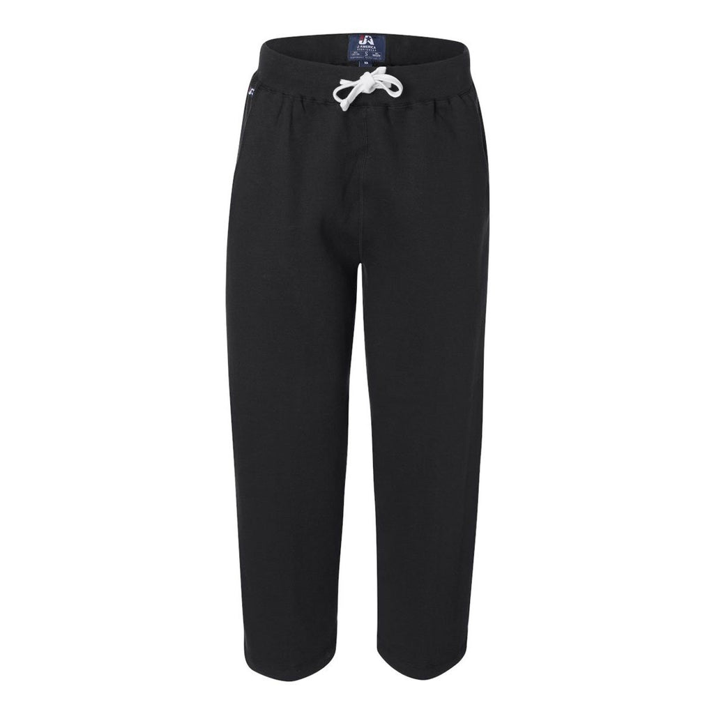 Present a premium appearance at the next business seminar by ordering the embroidered J. America Men's Black Premium Open Bottom Sweatpants. The fashionable casual apparel is the ideal garment to wear lounging around the pool, while you chat with potential customers. Make sure to attach your corporate logo on the large imprint area to create an enduring positive impression. Poly filament cross stretching fabric increases the range of motion for your legs. Improved mobility comes in handy when you play softball or perform home improvement projects. Super soft cotton ensures your legs and waist never chafe because of rough fabric.Highlights