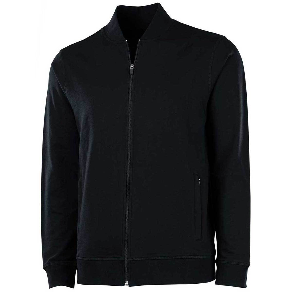 • Dyed-to-match rib knit trim design on collar, sleeve cuffs, and bottom band