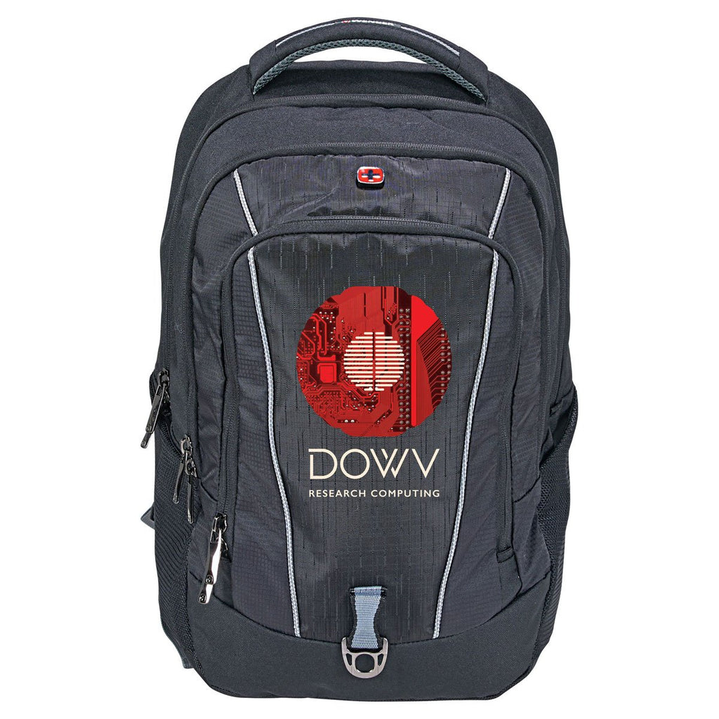 The three main zippered parts of the Wenger Charcoal Origins 15" Computer Backpack allow for room for all the items an employee needs. The design includes a padded compartment for a laptop. The loop feature on the back secures the pack to a larger bag. The organization is suitable for all traveling employees and can also be used as an employee appreciation gift.Highlights