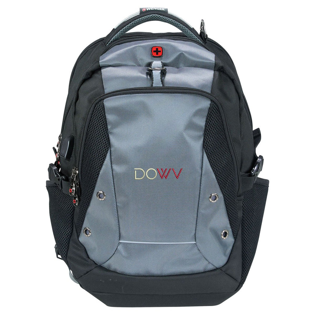 The buckles on the sides of the Wenger Charcoal Outlook 17" Computer Backpack help you to keep the pack secured to a larger luggage piece, but there's more to this model. The backpack also offers three large zippered compartments on the outside. The large surface for a company name on the front adds a great touch.Highlights