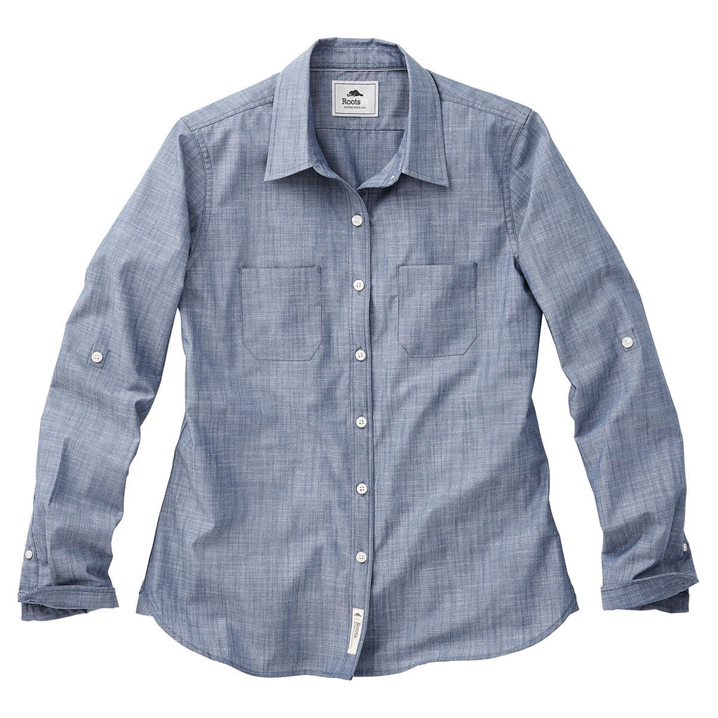 Give your employees, customers, and partners a stylish shirt to wear at your next corporate event with your company logo added. The Roots73 Women's Dark Denim Clearwater Long Sleeve Shirt has a casual look and can be worn buttoned up or open. It also has a roll up sleeve tab with button closure for a three-quarter sleeve look.Highlights