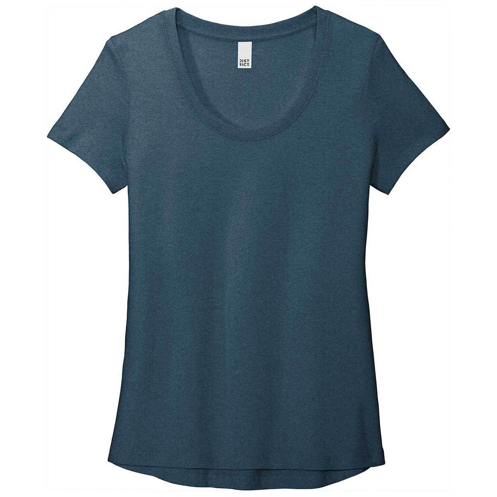 Be comfortable all day with a heat transfer District Women's Heathered Neptune Blue Flex Scoop Neck Tee. With just a hint of stretch this traditional fitting scoopneck is a combination of combed ring spun cotton, poly, and spandex with a rib knit neck and slight high-low rounded hem. Add a company logo to offer these at trade shows or as employee gifts or add a corporate logo to use as employee uniforms or at team events. This tee is far from basic with the all day comfort that we all want and deserve. A variety of sizes and colors are available to choose from to meet your design needs.Corresponding Men's Style: District Men's Heathered Neptune Blue Flex Tee