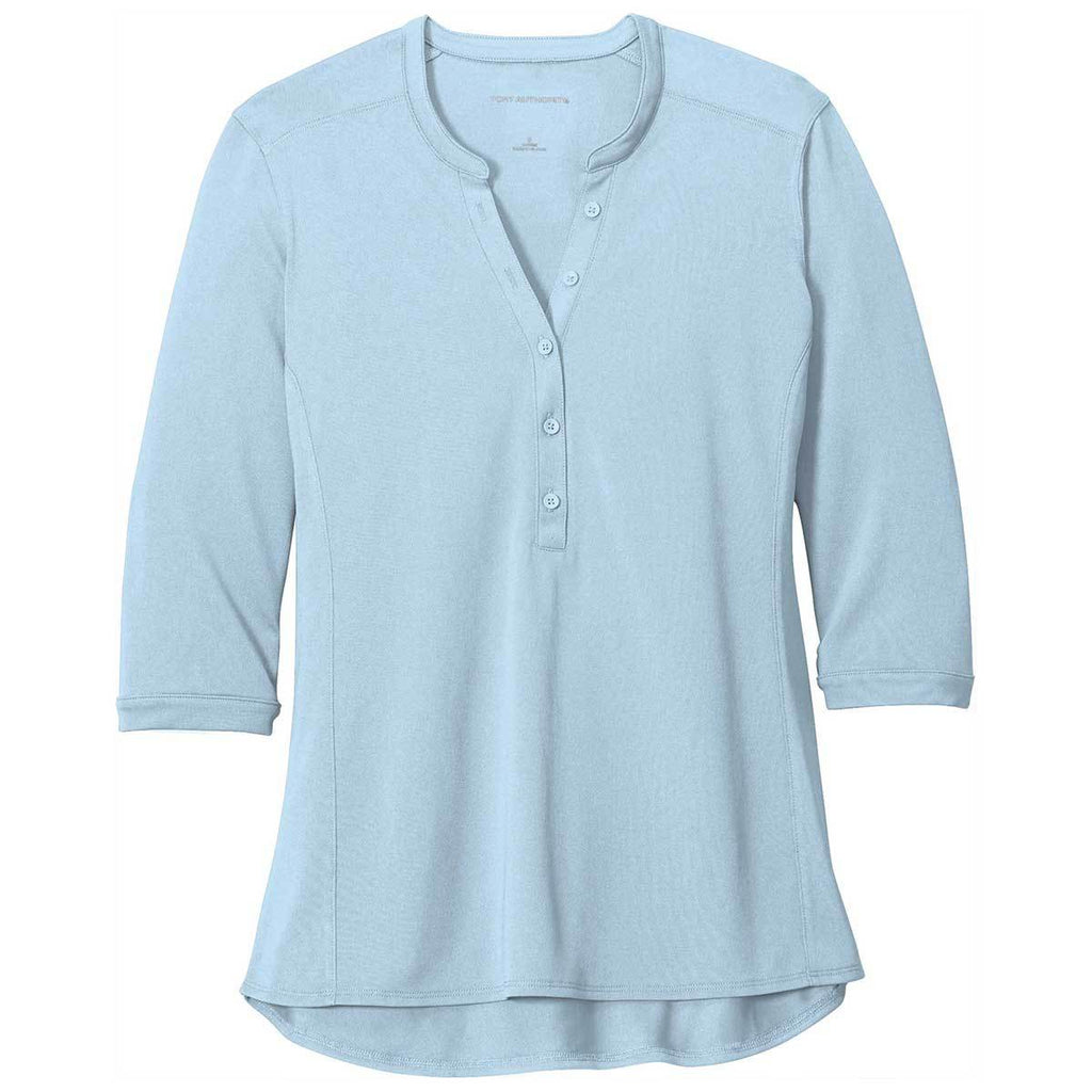 Enjoy a take on the classic henley style with the Port Authority Women's Cloud Blue UV Choice Pique Henley in various size and color options. This gorgeous 2/3 length sleeve shirt is must have for the weekend warrior with a custom logo of your choosing. Perfect for team events or retreats, the soft polyester pique fabric is snag resistant, moisture wicking, and has a UPF rating of 20+. The open neckline on this 5 button henley makes it a great choice as a company uniform with a custom embroidery or simply a welcome addition to your personal wardrobe. Excellent prospect as an employee gift as well.