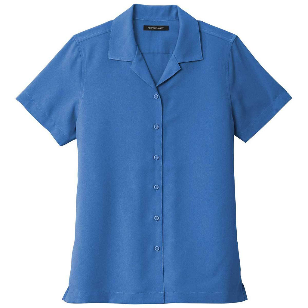 Port Authority Women's True Blue Short Sleeve Performance Staff Shirt provides the perfect canvas for an embroidery design of your choosing. The 100% polyester, lightweight short sleeve shirt is fashion forward and functional for the office or a day out with friends. Complete with stain release, odor-fighting, and moisture wicking technologies, this shirt is a must have at corporate events and daily office wear. Add a corporate logo to advertise your brand or a custom logo to use for daily wear. The camp collar styling is perfect for layering and side vents offer freedom of movement. Place your order right away to add these to your personal wardrobe or give as gifts.Corresponding Men's Style: Port Authority Men's True Blue Short Sleeve Performance Staff Shirt