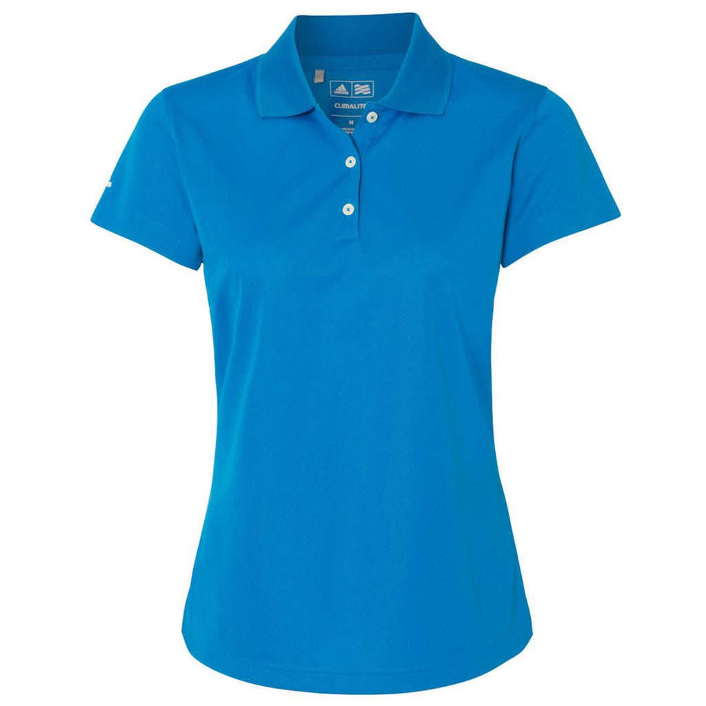Adidas Golf Women's Shock Blue/White Climalite Basic Sport Shirt is a must have for every woman in your life. Perfect for any event you need to attend or as employee apparel when at the office, the custom embroidery sport shirt is 100% polyester with hydrophilic finish and rib knit collar. The 3-button placket and open hem sleeves offers a classic look in a large variety of colors to meet every need. Add your company logo to the Custom Adidas sports shirt and strut your stuff whether at a recruiting or trade show. The price is right and the Adidas name demonstrates quality, how many will you order?Corresponding Men's Style:Adidas Golf Men's Shock Blue/Mid Grey Climalite Basic Sport Shirt