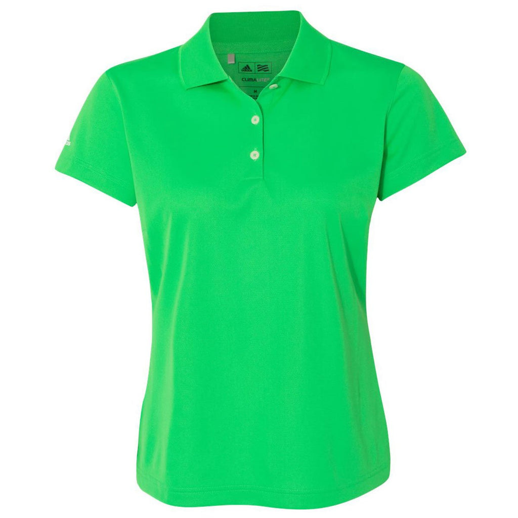 Adidas Golf Women's Solar Lime/White Climalite Basic Sport Shirt is a must have for every woman in your life. Perfect for any event you need to attend or as employee apparel when at the office, the custom embroidery sport shirt is 100% polyester with hydrophilic finish and rib knit collar. The 3-button placket and open hem sleeves offers a classic look in a large variety of colors to meet every need. Add your company logo to the Custom Adidas sports shirt and strut your stuff whether at a recruiting or trade show. The price is right and the Adidas name demonstrates quality, how many will you order?Corresponding Men's Style:Adidas Golf Men's Solar Lime/White Climalite Basic Sport Shirt