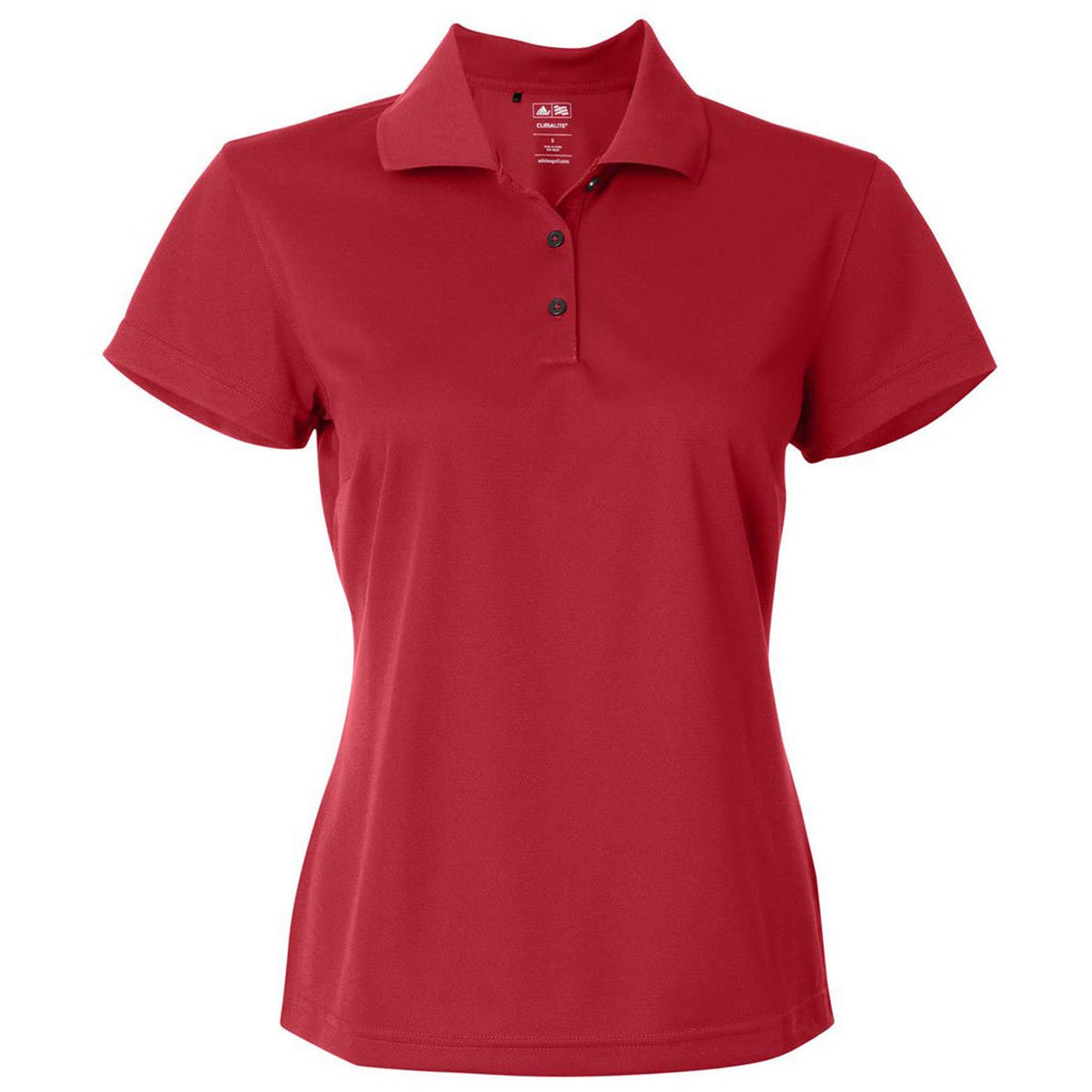 Adidas Golf Women's Power Red/White Climalite Basic Sport Shirt is a must have for every woman in your life. Perfect for any event you need to attend or as employee apparel when at the office, the custom embroidery sport shirt is 100% polyester with hydrophilic finish and rib knit collar. The 3-button placket and open hem sleeves offers a classic look in a large variety of colors to meet every need. Add your company logo to the Custom Adidas sports shirt and strut your stuff whether at a recruiting or trade show. The price is right and the Adidas name demonstrates quality, how many will you order?Corresponding Men's Style:Adidas Golf Men's Power Red/Black Climalite Basic Sport Shirt