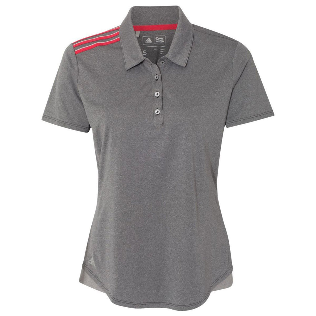 Custom Adidas is the way to go and the Adidas Golf Women's Black Heather/Ray Red/Stone Climacool 3-Stripes Shoulder Sport Shirt is no exception. Made from 100% polyester with moisture management properties, this custom Adidas shirt will keep you cool when the temperature is turned up. Ideal for a golf event or trade show in the warmer months, this sport shirt can proudly carry your company logo with style and professionalism. The logoed shirt can also function as employee apparel to put forth a particular, well-groomed look for your store or office front. The 3-stripe pattern on the shoulder adds just enough extra to help your look stand out!Corresponding Men's Style:Adidas Golf Men's Black Heather/Ray Red/Stone Climacool 3-Stripes Shoulder Polo