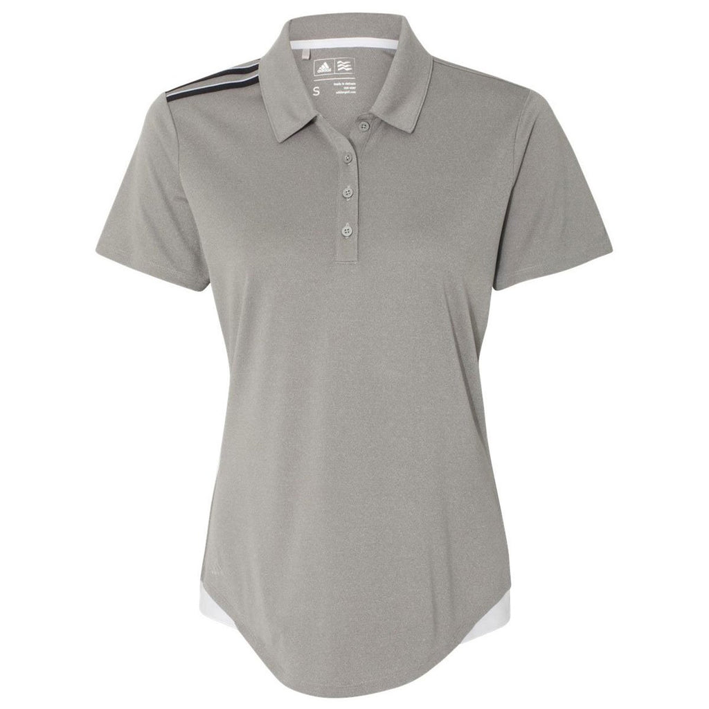 Custom Adidas is the way to go and the Adidas Golf Women's Medium Grey Heather/Black/Mid Grey Climacool 3-Stripes Shoulder Sport Shirt is no exception. Made from 100% polyester with moisture management properties, this custom Adidas shirt will keep you cool when the temperature is turned up. Ideal for a golf event or trade show in the warmer months, this sport shirt can proudly carry your company logo with style and professionalism. The logoed shirt can also function as employee apparel to put forth a particular, well-groomed look for your store or office front. The 3-stripe pattern on the shoulder adds just enough extra to help your look stand out!Corresponding Men's Style:Adidas Golf Men's Medium Grey Heather/Black/Mid Grey Climacool 3-Stripes Shoulder Polo