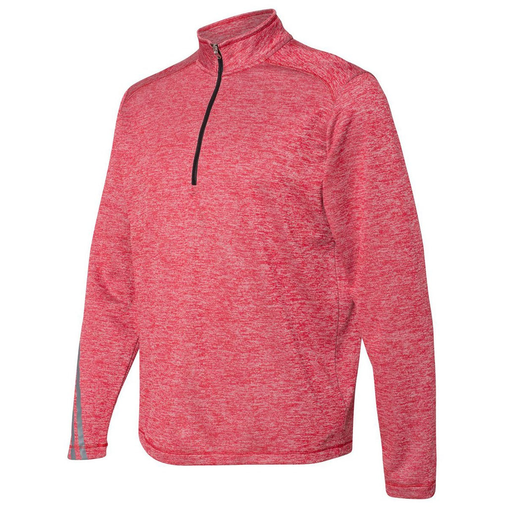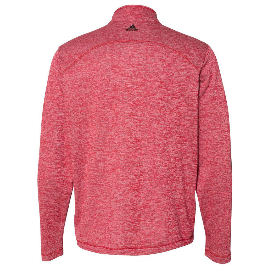 As colder weather descends upon us let the Adidas Golf Men's Power Red Heather/Black Brushed Terry Heather Quarter-Zip keep you warm and toasty. Made of 100% polyester with reflective gradient 3-stripes on the right forearm and Adidas logo, the brushed terry offers a professional look with a comfortable feel. Great for layering with custom Adidas polo shirts, these quarter-zip pullovers could serve as part of employee apparel or just an added layer at the next trade show. Add your company logo or corporate embroidery for that little extra on the already amazing pullover. Start your design and place an order today. We are waiting to hear from you!Highlights