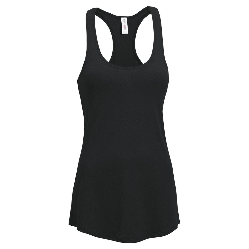 Get ready to sweat and flex in this Expert's Expert Women's Black TriTec Racerback Tank that's long enough to stay tucked into your summertime skirts or workout shorts, but not so long that it juts out and reveal underneath. Its feminine contour flatters curves while drop tail hem provides superior back coverage. Lined with moisture-wicking material, this racer tank stays comfortable throughout and crafted from tri-blend polyester-cotton-rayon fabric that moves with you for an optimal workout experience. This tank was designed with an active lifestyle in mind and can be customized with a name or logo of your company for corporate events.Highlights
