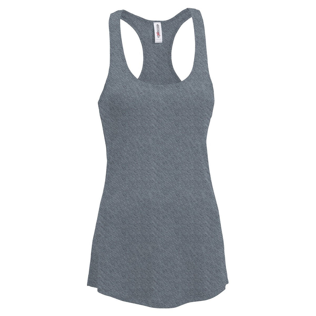 Get ready to sweat and flex in this Expert's Expert Women's Charcoal TriTec Racerback Tank that's long enough to stay tucked into your summertime skirts or workout shorts, but not so long that it juts out and reveal underneath. Its feminine contour flatters curves while drop tail hem provides superior back coverage. Lined with moisture-wicking material, this racer tank stays comfortable throughout and crafted from tri-blend polyester-cotton-rayon fabric that moves with you for an optimal workout experience. This tank was designed with an active lifestyle in mind and can be customized with a name or logo of your company for corporate events.