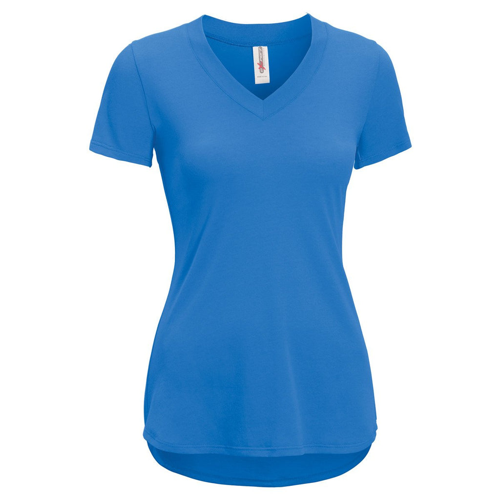 Expert's Expert Women's Royal TriTec Deep V-Neck Tee takes a modern twist with host of workout-ready features for active days including a steep neck, drop hem for extra coverage and a modern form that lends a flattering, feminine fit. Soft tri-blend cotton-blend fabric ensures this top while being breathable and functional, is ready for sunny days of play in warm weather. Make your own workout tees for your event or company with our high-tech customization service allowing you to add your logo imprint to this women's v-neck t-shirt.