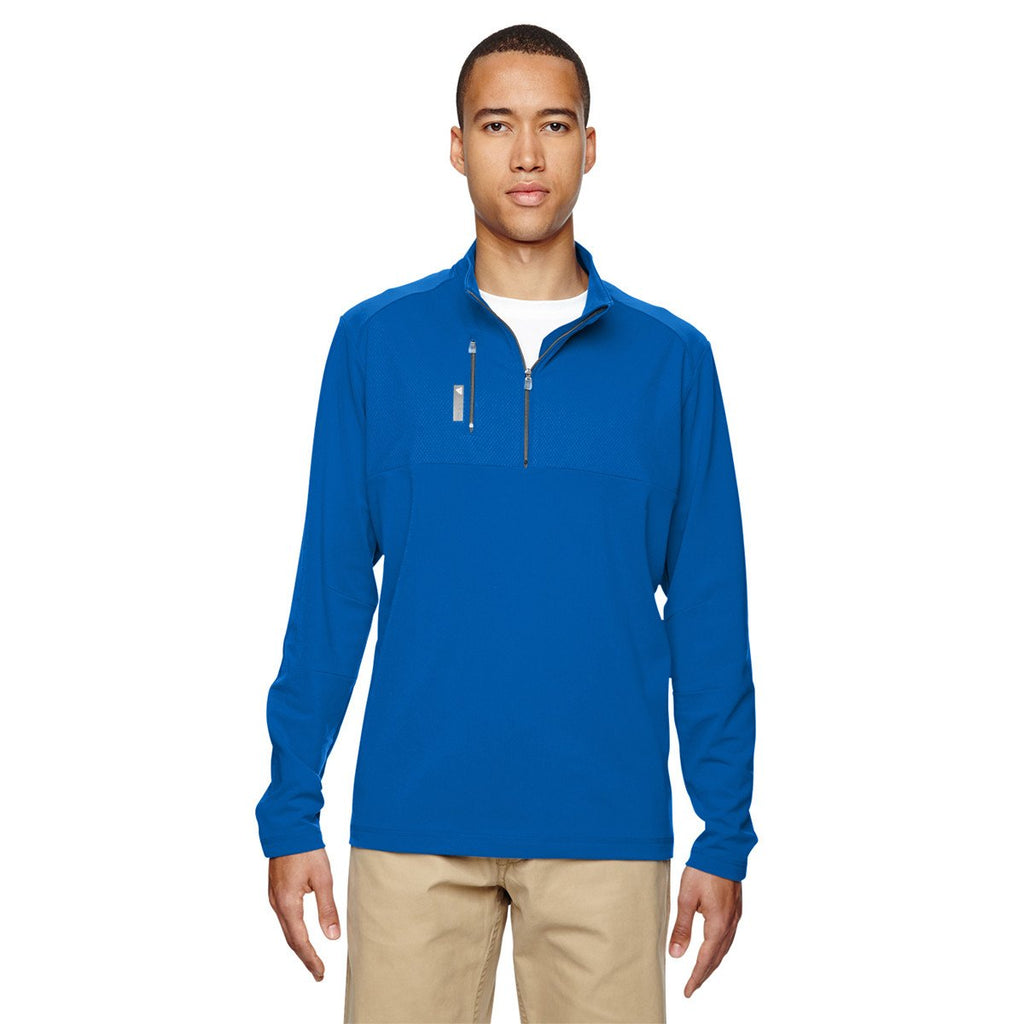 Want a shirt you can wear just about anywhere including the golf course? Then only a quarter-zip pullover-style shirt will suffice. Specifically, we're talking about this adidas Golf Men's Royal Puremotion Mixed Media Quarter-Zip. Not only is it comfortable enough to wear just about anywhere you go, but it's stylish enough to fit in, what with its right chest zipper pocket, its banded cuff and bottom hem, and the self mock collar. Mostly polyester fabric ensures a breathable, lightweight durability that's hard to get from other fabrics. All it's missing is the additional element of your own company's brand right on the front.Highlights