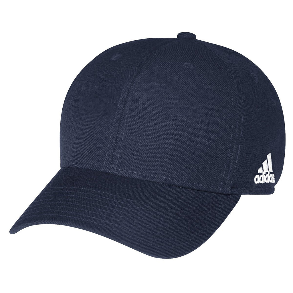 Celebrate your company's team spirit by giving the adidas Navy Structured Adjustable Cap during the holiday season. You attach the company logo to the front of the hat to promote unity. A moisture wicking sweatband quickly removes perspiration that builds up under the highly durable cap. Cotton twill feels soft against the forehead and the adjustable Velcro closure adapts to virtually every head size.Highlights