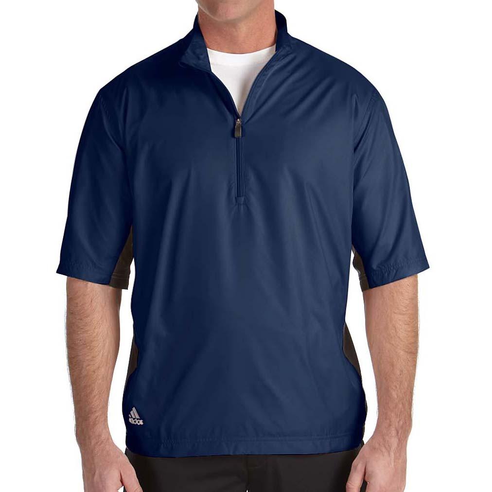 Want to look golf-course-appropriate without the same old polo-khaki combination that everyone else is wearing? Then try the adidas Golf Men's ClimaLite Navy Colorblock Half-Zip Wind Shirt. It looks like a smart pullover while containing the wind and water resistance of a true wind shirt, thus ensuring you maximum weather protection as well as maximum sartorial value. The side panel zip pockets help you keep your tees and golf pencil handy, while the storm flap and chin guard make you feel like a-well, like someone who doesn't avoid tee times simply because of weather reports. Because when you wear this shirt, that's what you are.Highlights