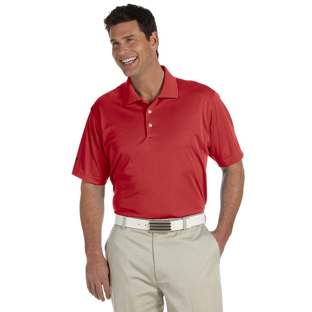 Keeping your cool on the golf course is about more than your head. It's about your body. A rough day on the links is only compounded when you've got to worry about overheating. This shirt allows you a literal cooler head-and a figurative one as well. The adidas Golf Men's ClimaLite University Red S/S Basic Polo features a 3-button placket, rib-knit collar, open-hem sleeves, side vents and a drop tail. It is a very lightweight and breathable polo shirt. To finish off this design, there is a contrast adidas logo on the right sleeve.Corresponding Women's Style: adidas Golf Women's ClimaLite University Red S/S Basic Polo