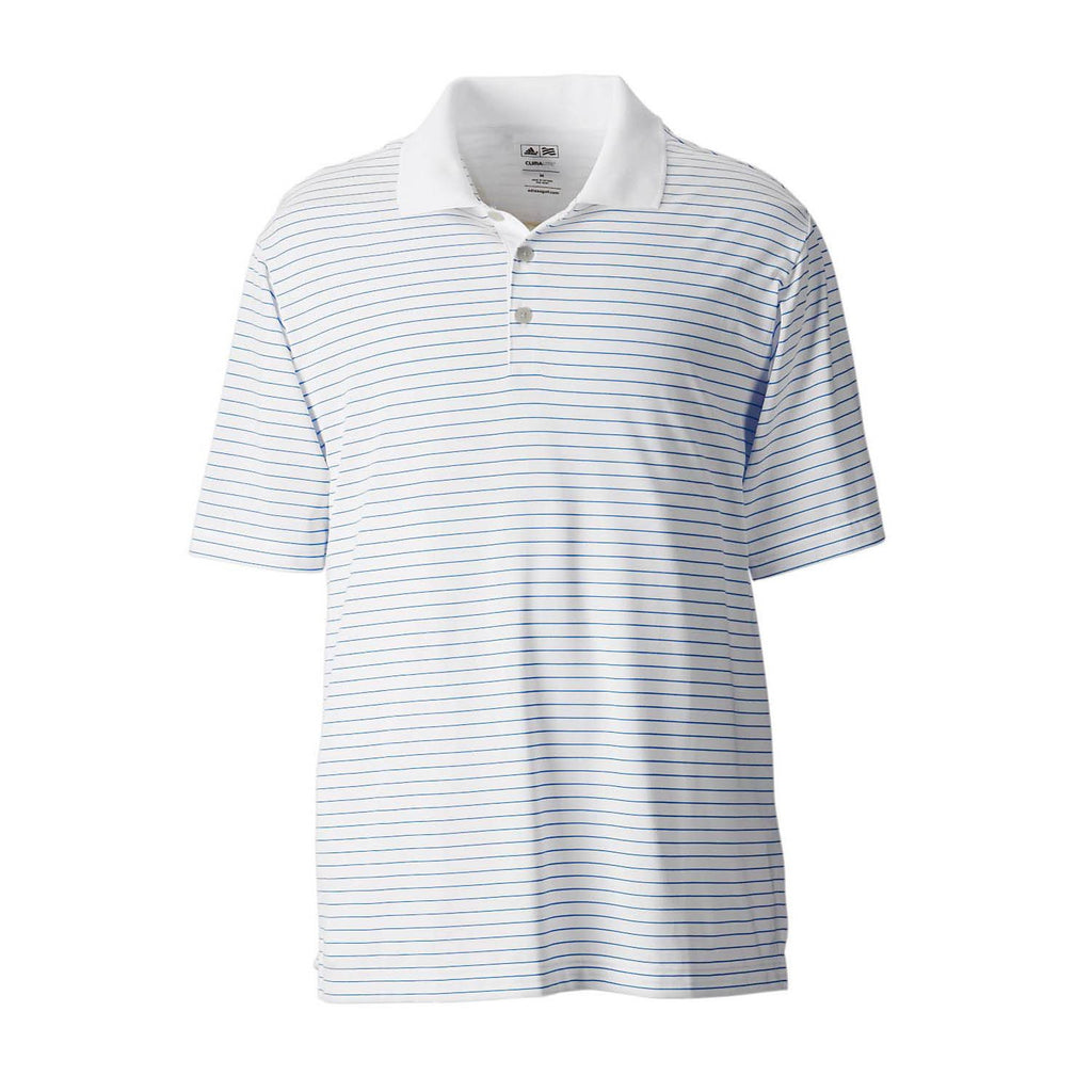 adidas Golf Men's ClimaLite White/Coast Blue Pencil Stripe S/S Polo