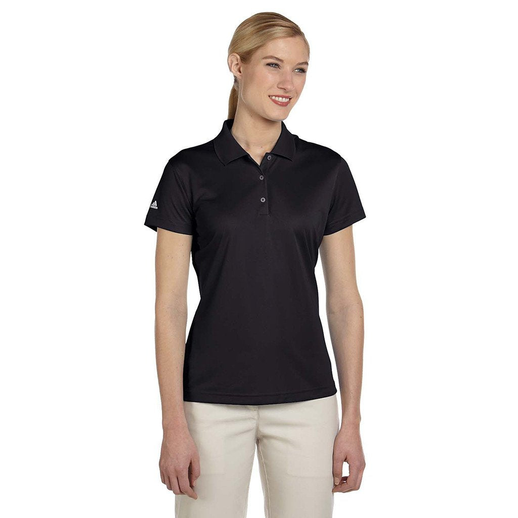 Women love the Adidas Golf Women's ClimaLite Black Basic Polo for so many reasons. For starters, the classic design refuses to go out of style. There's also the durability, the comfort, and the downright flexibility to consider. Yes, adidas Golf Women's ClimaLite Black S/S Basic Polo is truly a shirt for all seasons. This women's top is made up of 100% polyester and breathable. It's perfect for hot days or high-stress situations. Details on this top include a rib-knit collar, open-hem sleeves, textured surface, subtle stripes and a mesh ventilation back. Classic adidas stripes are featured on the right shoulder and there is an adidas logo on the back neck.Corresponding Women's Style: adidas Golf Men's ClimaLite Black S/S Basic Polo