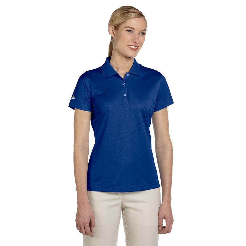 Women love the adidas Golf Women's ClimaLite Royal Blue S/S Basic Polo for so many reasons. For starters, the classic design refuses to go out of style. There's also the durability, the comfort, and the downright flexibility to consider. Yes, the adidas Golf Women's ClimaLite Royal Blue S/S Basic Polo is truly a shirt for all seasons. This women's top is made up of 100% polyester and breathable. It's perfect for hot days or high-stress situations. Details on this top include a rib-knit collar, open-hem sleeves, textured surface, subtle stripes and a mesh ventilation back. Classic adidas stripes are featured on the right shoulder and there is an adidas logo on the back neck.Corresponding Women's Style: adidas Golf Men's ClimaLite Royal Blue S/S Basic Polo