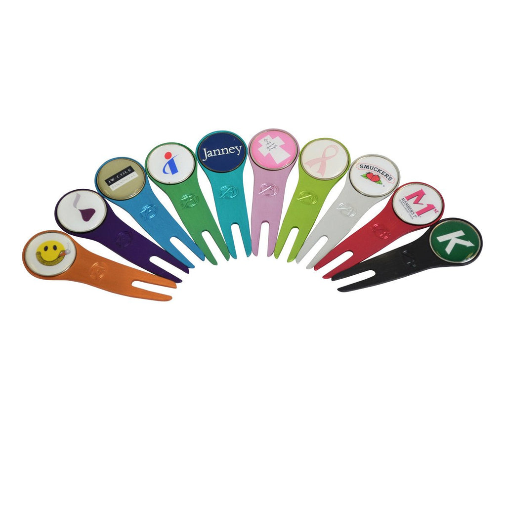 Repairing a divot is basic golf etiquette, but that doesn't mean you have to content yourself with a basic divot tool. This AHEAD Anodized Aluminum Divot Tool (w/ Custom Logo Ballmarker) has exactly what you need to repair divots with ease-which is especially important if you're the kind of golfer who is always leaving a trail of scarred earth in your path.