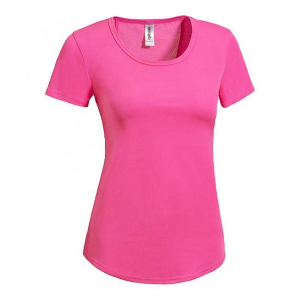 Expert Women's Hot Pink Angel Scoop Neck is a soft, breathable, lightweight, short sleeve tee for your summer workout wardrobe. The modest scoop neckline and shaped hem keep it looking casual while providing necessary coverage. Relaxed fit and hip length make for effortless layering. Back pleat ensures trouble-free full-range movement. The tee features moisture-wicking and BodyFreshe technologies to keep you fresh during cardio workouts on the trail or the track. Your female associates or customers will love to sweat in this custom imprinted women's t-shirt while proudly flaunting your logo or message in their active lifestyle.Highlights