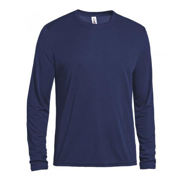 This Expert Men's Navy Long Sleeve Tee is made from 100% microfiber polyester pk maX with a wicking finish that swipes sweat from your skin and treated with anti-allergic BodyFreshe technology. The shirt has a relaxed fit and conforms to every movement of your body. This simple long-sleeve crew neck is great not just for an active lifestyle but it also works for all summertime activities. If you're after an ergonomic version of everyday basic T, you'll love this Expert's Long Sleeve Tee. It is customizable with a logo or message for uses such as branded merchandise, corporate giveaway or for event marketing/promotion.