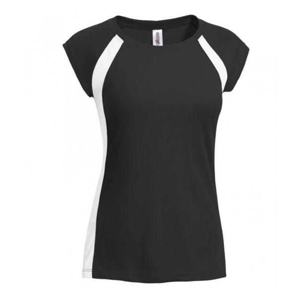 Flaunt some shoulder with tiny cap sleeves with Expert Women's Black/White Raglan Colorblock. Enlivened by short sleeves and v-neck with curved hem, this tee flaunts a relaxed fit in feminine appeal. Crafted from sweat-wicking 100% microfiber polyester oXy mesh fabric. Treated with BodyFreshe anti-bacterial tech to keep the garment fresher and odorless for longer. Complete this women's tee with an imprint of your company's logo or message with our quick and reliable customization service. Perfect for sports events, corporate giveaway or general promotional merchandise.Highlights
