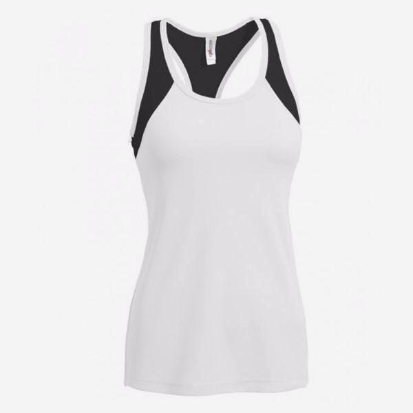 Head to the gym in this racerback-inspired Expert Women's White/Black Distance Singlet that screams 'I don't glisten, I sweat' attitude. Self-binding neck and armholes ensure no-fuss movement of your guns. The racerback cut will make you feel workoutaholic the more iron you pump. Contrast panels add to aesthetics of this sleeveless workout top while a fold over pocket holds your essentials. Treated with antibacterial and sweat-wicking properties. Customize this women's singlet with your logo to bring your company to the public eye. Perfect for dance studios, gyms and other businesses related to active lifestyle.Highlights