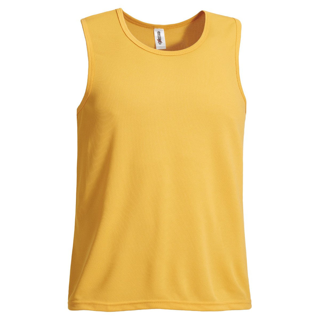 Expert's Expert Men's Gold Singlet flaunts a laid-back form/silhouette that liberates your guns from the shackles of a regular t-shirt. Self-fabric binding at neck and armhole guarantees a chafe-free comfort. Relaxed fit assures freedom and mobility. BodyFreshe anti-bacterial treatment keeps the singlet fresher for longer by curbing the growth of bacteria. Moisture-wicking properties will deflect any sweat that develops as training gains momentum. Order custom singlets for your next event and help your clients stay active with this men's tank featuring your logo and let the world know your company is for a healthy world!Highlights