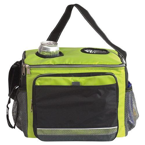Stock up on beverages with this tailgate and picnic-ready Atchison Apple Green Icy Bright 24-Pack featuring a durable heat-sealed PEVA-lined compartment for optimal temperature regulation. Boasting space for up to 24 cans, this cooler is great for tailgating, barbecues, picnics and more. Other highlights include two insulated drink pockets, front zippered compartment, two mesh water bottle pockets and adjustable shoulder strap. Add your company logo or name for perfect touch!The minimum order for this product is 50 pieces.