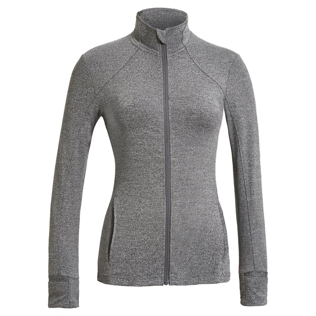 Fake it 'til you make it with this Expert Women's Charcoal Heather Full Zip Training Jacket. This turtleneck number is equipped with a full-length zipper and semi-fitted with fold-over and cuff perfect for running, walking, cardio, whatever. Thumb holes keep your digits warm when exercising outdoors. Discreet inseam pocket makes it easy to stash mini essentials. Flat seams curb irritation or chafing. Engineered with moisture-wicking and antibacterial fibers to help you stay dry and fresh for longer. Personalize this jacket with custom logo imprint of your company or brand.