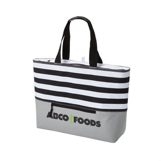 • 600D Polyester striped cooler bag
