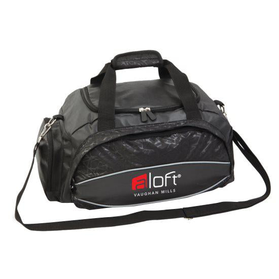 K & R Black The Versatile is a simple and stylish duffel bag that can be customized to sport your company's logo on the front. It can be converted into a backpack as well thanks to its hideaway backpack straps. Zippered compartments keep your essentials secure and organized. The minimum order for this product is 12 pieces.