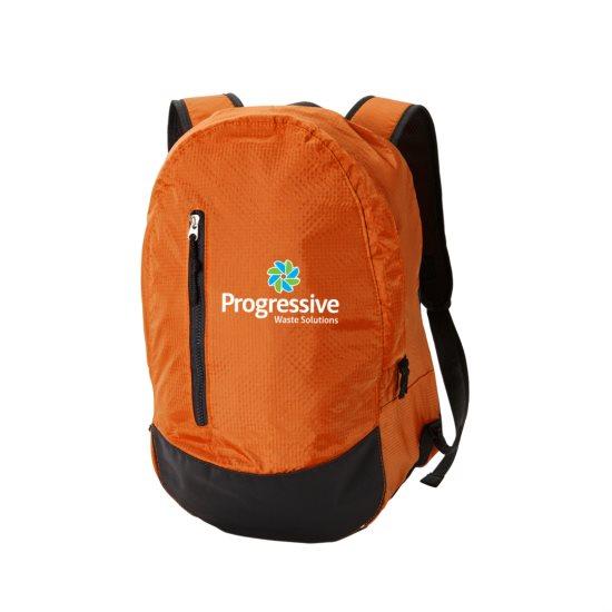 K & R Orange The Scholar backpack is a stylish storage bag that works as well for camping as it does for the campus. Boasting 210D ripstop fabrication with black trim, it's a solid waterproof pack with generous storage space. It can be customized to display your company's corporate logo, or message, as desired. The minimum order for this product is 25 pieces.Highlights