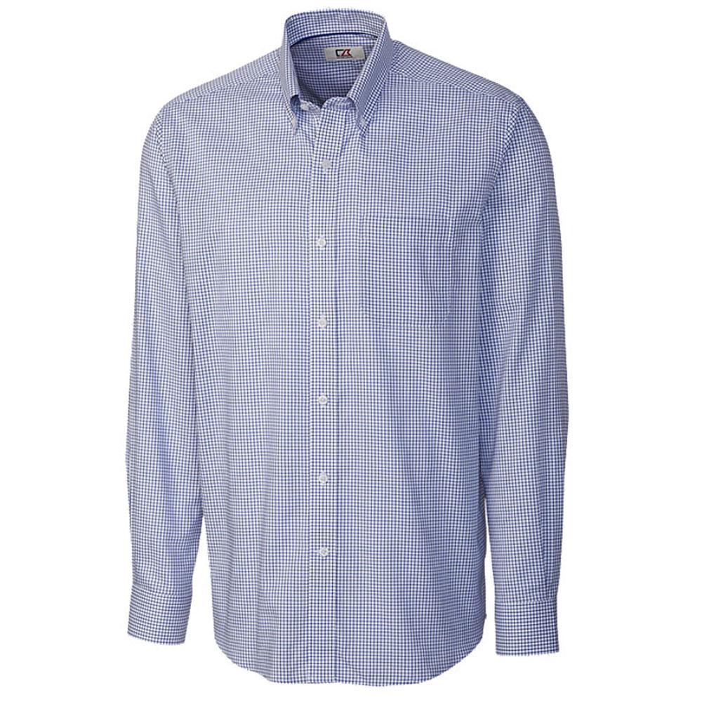 View the attractive look of the Cutter & Buck Men's French Blue Tall Long Sleeve Epic Easy Care Tattersall Shirt for yourself and see how this outfit fits in well with many company uniform standards. The tattersall style comes with a button-down collar and a brilliant layout featuring thick lines intertwined with each other on the main body. The barrel cuffs add a good touch to the outfit. The smooth design of the plain weave adds a good touch to wear as well, thus producing a body you will want to sport anywhere you go. This is comfortable for many outfits and is nice to wear under a jacket at any formal outing.Highlights