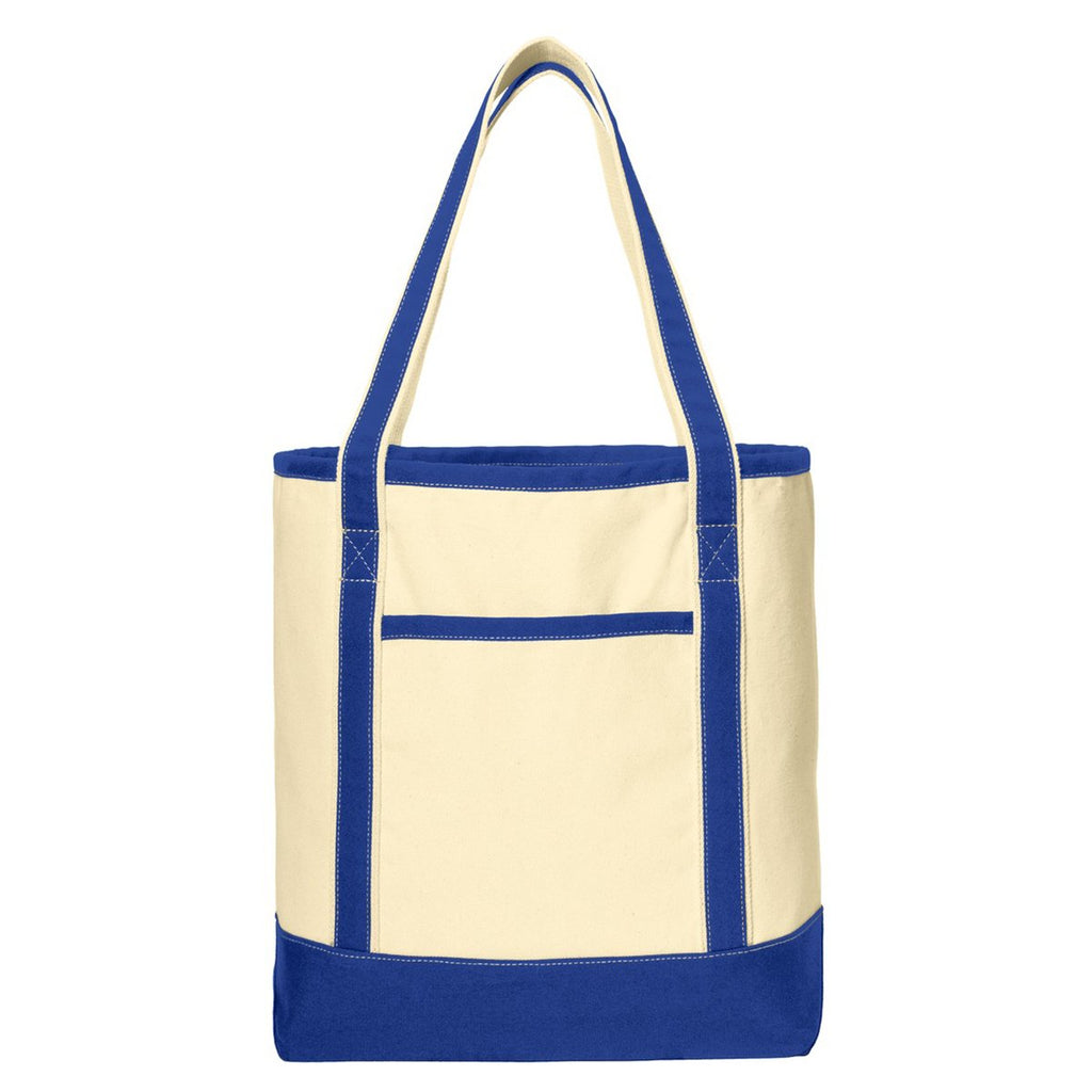 Port Authority Natural/True Royal Large Cotton Canvas Boat Tote