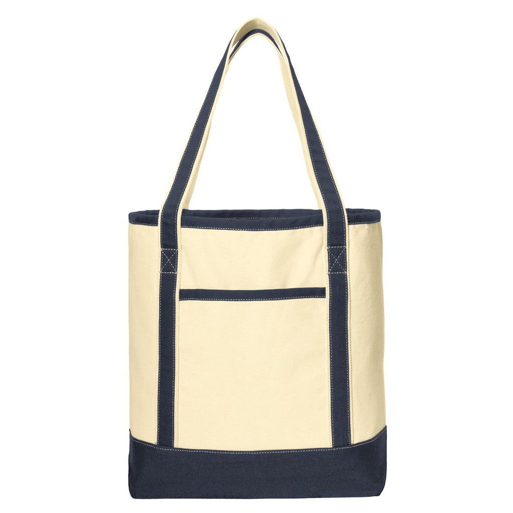Port Authority Natural/Navy Large Cotton Canvas Boat Tote