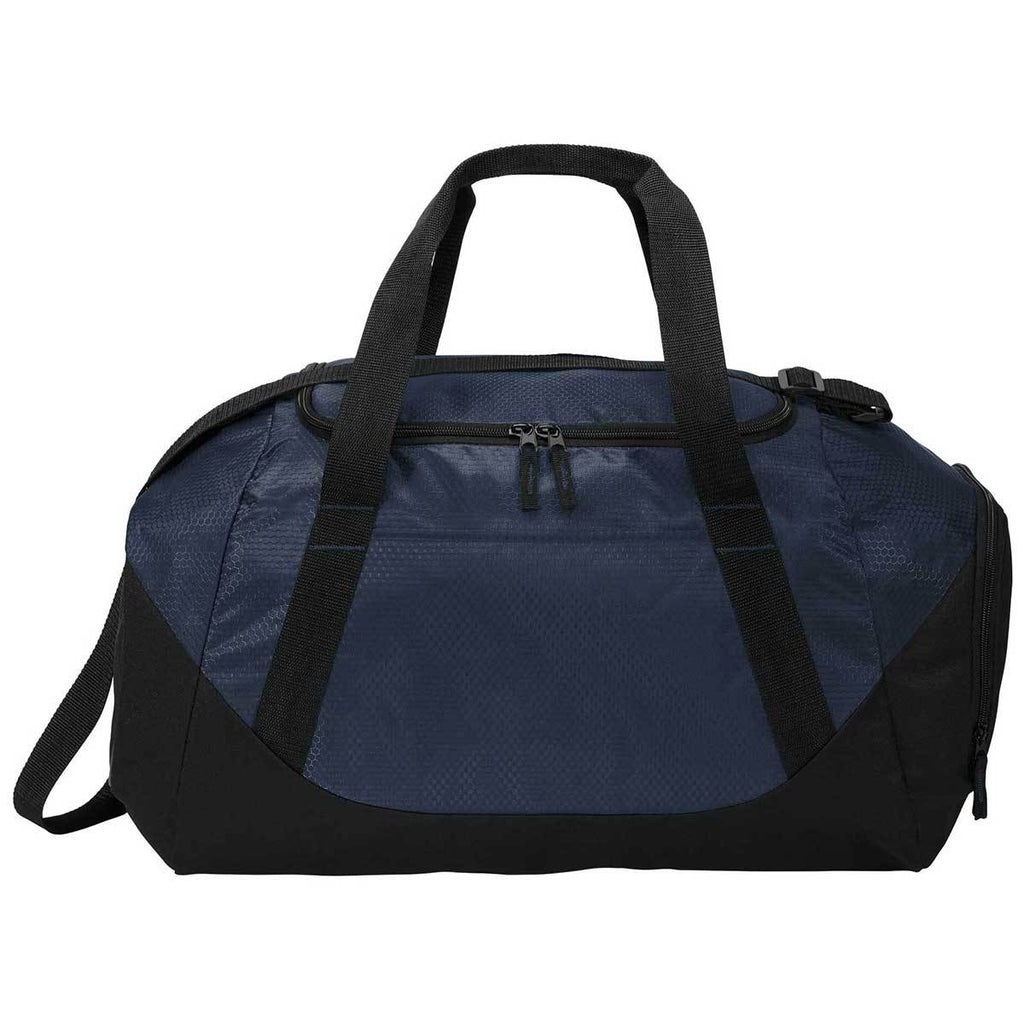Overnight trips just got easier with a custom Port Authority Navy/Black Team Duffel. Add a custom embroidery to this large main compartment duffel to use for team events and easy identification. The ventilated shoe compartment and sporty look will make it an instant favorite for away games. A company logo can support investors as your travel with a specific team as this will be an instant hit with athletes and teams. Complete with a front slip pocket for embroidery, web carrying handles, and an adjustable shoulder strap, this duffel measures 12.5 x 19.75 x 12 inches for plenty of storage.Highlights