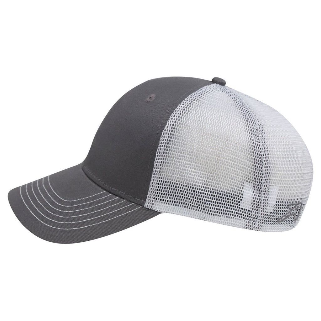 Trucker caps are a favorite for many and the AHEAD Battleship/White Laid Back Chino Trucker Cap is no exception. The classic cut cap is available in multiple colors that will display your corporate logo beautifully whether at a trade show or sporting events. The contrasting white mesh back allows for plenty of air flow on those warm days spent at retreats or any event. Your custom logo will make this headwear a must have for clients and employees alike.Highlights