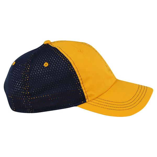 The AHEAD University Gold/Navy Lightweight Mesh Back Cap is a lightweight custom logoed cap, which is the perfect choice when you want to hand out a promo item branded with your company logo in bulk quantity. It offers a classic fit and comes equipped with Velcro tab with a loop. Mesh back ensures superior breathability with confidence. Complete active ensembles with this performance-ready cap ready to sport your brand name or logo for exposure at sports events, trade shows, fundraisers, campuses, and more.Highlights
