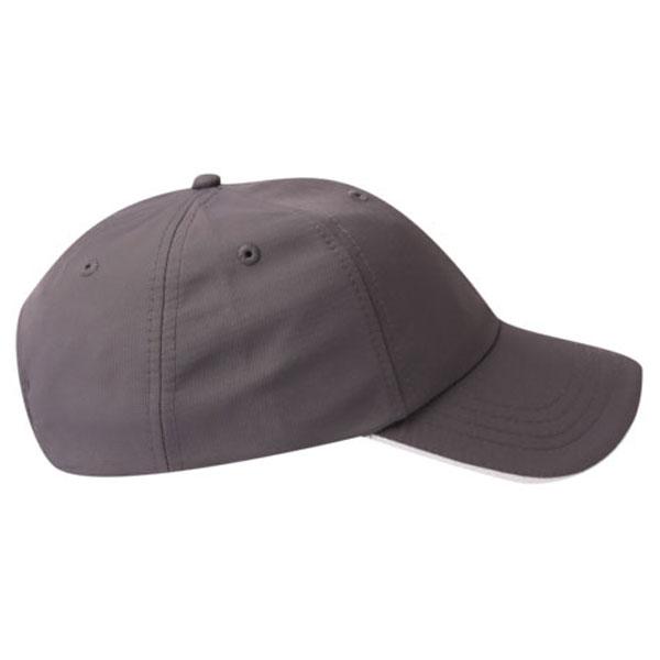 Your custom logo on the AHEAD University Grey/White Textured Poly Solid Cap will be an ideal gift for corporate events. It is a cap with a classic cut, so your corporate logo will look great embroidered on the large front side. This cap is made of textured poly and has an elegant lip edged visor. It is unstructured and has a velcro tab with loop grab for adjustments. Your employees will appreciate this high quality gift and wear it for years to come. Make your logo shine with the AHEAD White/Black Textured Poly Solid Cap.