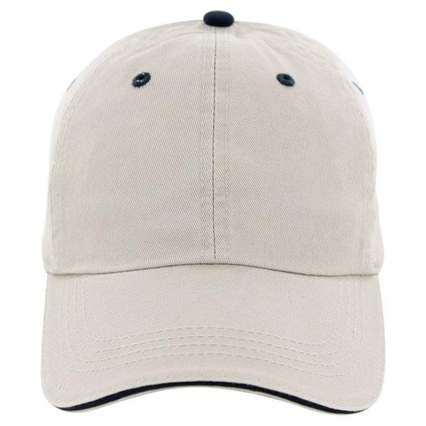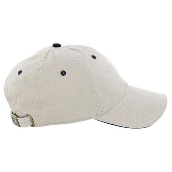 If you are planning a gift for your loyal employees or maybe for company promotions, the AHEAD Bone/Navy Classic Cut Sandwich Brim Cap with custom logo on it is always a good choice. This classic cap is always in, and goes with sportswear as well as casual wardrobe. This is why your employees will wear this cap with your corporate logo on during their everyday activities. This cap has classic cut made of vintage twill and its elegant look goes with most styles. It has a cloth strap with metal grab on back. Sandwich indentation is a different color than the cap, so you can choose between almost twenty color combinations and find one that goes best with your company.