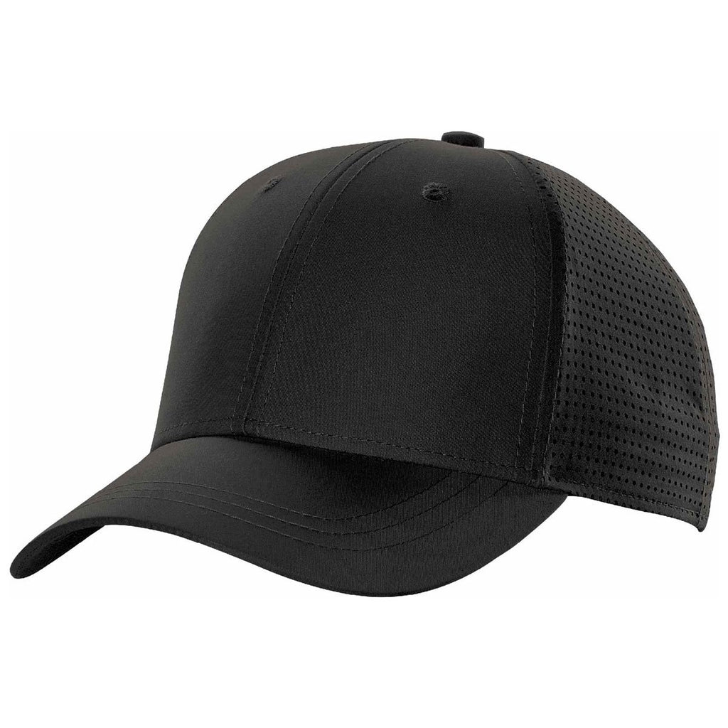 Keep your team cool and comfortable with this Stormtech Black Vented Cap. The structured crown features two solid front panels that are perfect for embroidering a custom company logo, and 4 lightweight polyester mesh panels to allow excess heat to escape. The pre-curved bill fits comfortably against the forehead and protects from sun and rain, making this perfect for employee apparel uniforms. Finished with a one size stretch-fit back that will work for almost all of your team members, this cap is sure to become a year-round outdoor go-to!