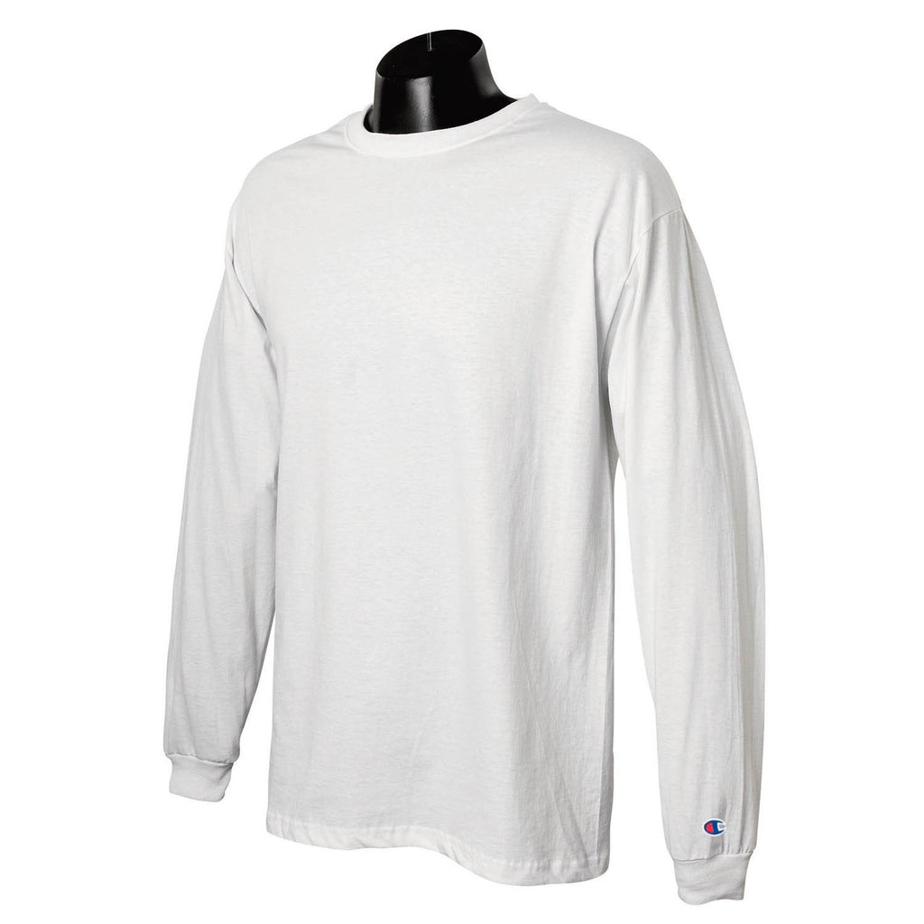 There's a reason they call it Champion--and it's not just the brand name. Champion has been a trusted name in sportswear thanks to classic style, quality craftsmanship, and plain being one of the best around. Featured here is the Champion Men's 5.2 oz White L/S Tagless T-Shirt. This is a timeless design that will never go out of style. The Champion Men's 5.2 oz White L/S Tagless T-Shirt is great for not just playing sports, but it's wonderful for everyday wear as well. Extremely comfortable, the tagless aspect allows for no neck irritation. It is made of 100% open-end cotton, has ribbed cuffs, a rubbed collar and there is a logo above the left cuff.Highlights