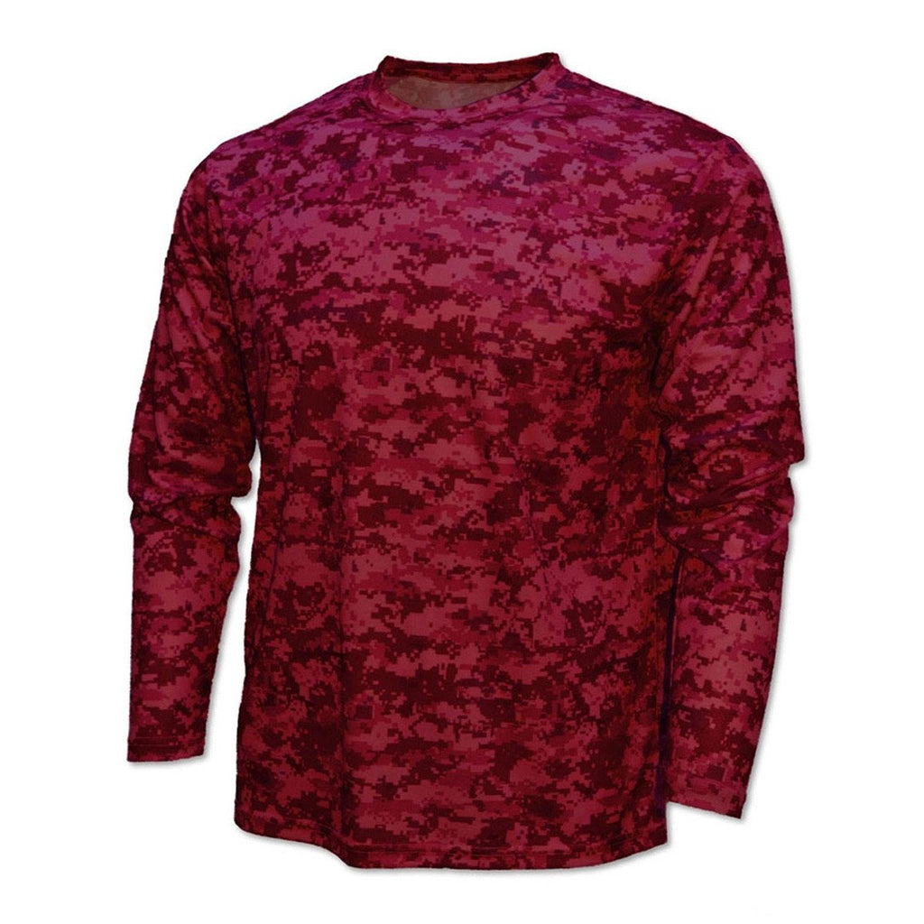 BAW Men's Maroon Xtreme Tek Digital Camo Long Sleeve Shirt