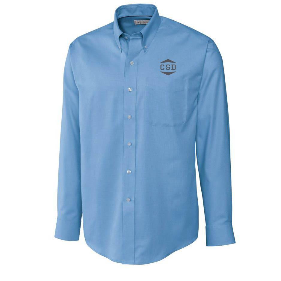 This dress shirt offer many unique qualities. It has a beautiful spread collar which allows the wearer to showcase their favorite tie or bowtie. In addition, it has french placket, and double button barrel cuffs. The Calvin Klein Men's Stream Blue Cotton Stretch Solid Dress Shirt will look fantastic with your corporate logo on the cuff or chest!98% cotton/2% polyester.