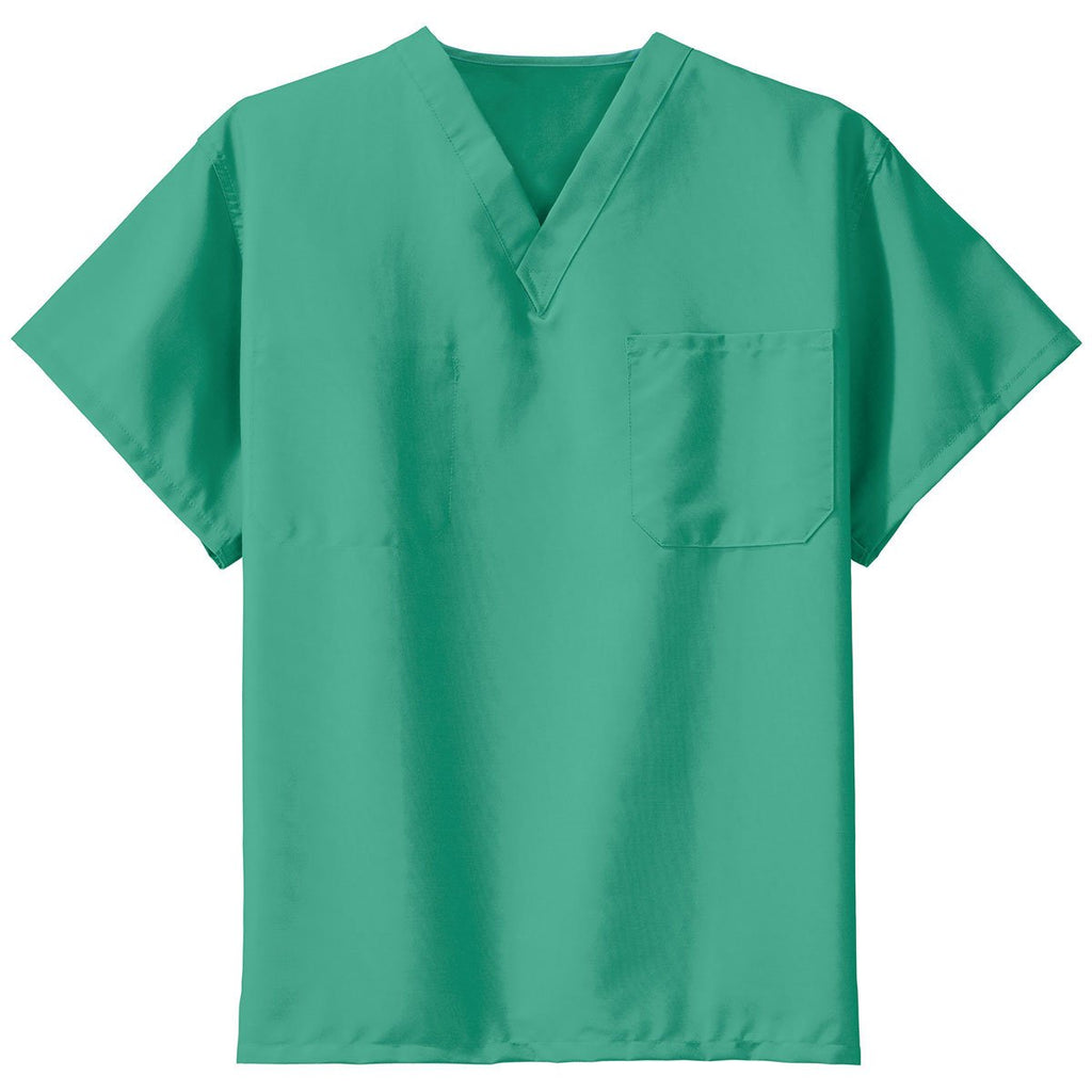 Physicians have to walk the workwear fine line between wearing rugged scrub tops and presenting a professional image that keeps patients at ease. The traditional cut on the CornerStone Jade Green Reversible V-Neck Scrub Top handles the professional image part of the fine line. A highly durable 65/35 polyester/cotton blend takes care of the rugged side of the fine line. The stain resistant medical workwear scrub top prevents odors from affecting your much-needed concentration during surgeries and checkups. Chest pockets on both side of the scrub top provide ample space to store smaller medical devices, as well as offer you the opportunity to sew on a custom logo that promotes your hospital or medical office.Highlights